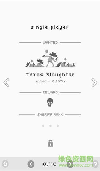 你快枪的速度会被记录下来,胜利的牛仔会做出各种搞笑的动作,牛仔被击中后会做出夸张的姿势。最后这一点混合了恶趣味和暴力美学,游戏甚至有一个功能就是回看所有 31 种被击中的特效,从「躺棺材」到「罗圈」,每一个动作都有一个狠歹歹的名字。游戏还提供双人模式,无聊或者有分歧时,不失为一种和朋友轻松一乐顺带解决分歧的好方式。对游戏的口味千差万别,然而牛仔大决斗算得上那种人人都能上手玩上一会儿的小作品。其实,同样的游戏玩法非常容易复制,然而这样一款小游戏的细节还是打动了我们。
