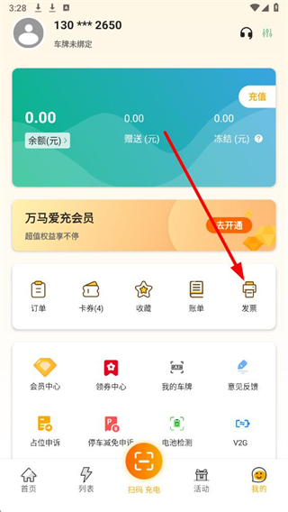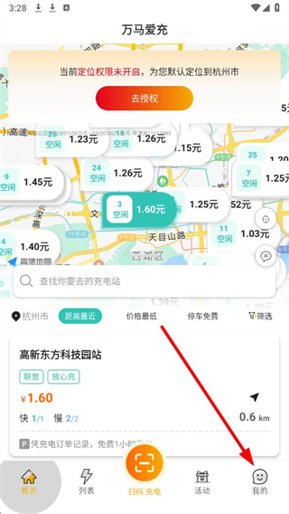 1、在万马爱充app首页,点击右下角我的按钮,进入个人页面。