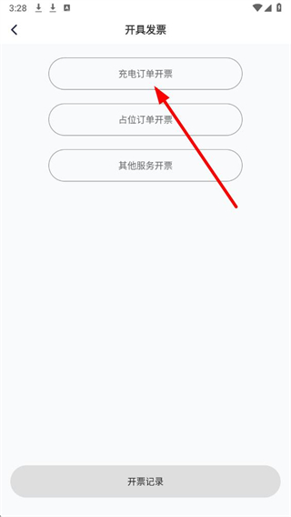 3、在开具发票界面,选择充电订单开票选项,进入充电订单的发票申请页面。