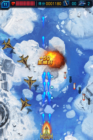 4.多种战机设计,每种战机拥有不同的独有射击技能,武器可提升等级,威力如虎添翼。