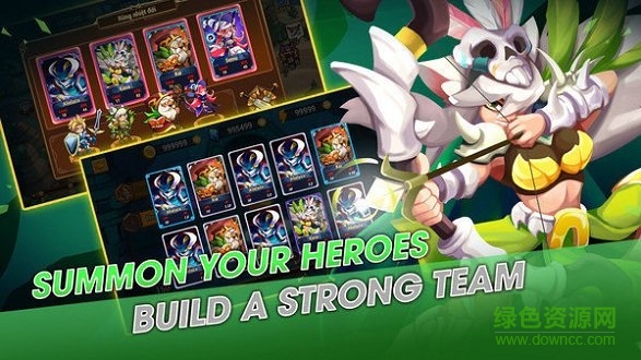 2、画面风格是战斗冒险类的卡通式场景,人物也是经典的冒险式英雄,不过卡牌的设计很有趣味,带你一起加入保卫城堡的战斗;