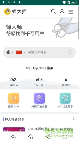 蝉大师app为用户提供了aso优化、查询服务功能,该平台面向网友们推送了海量热门手游、应用下载资源,第一时间推出全网最新上线产品供用户体验!同时也为应用开发商们提供了产品推广以及决策服务!需要的用户欢迎在绿色资源网安装使用。