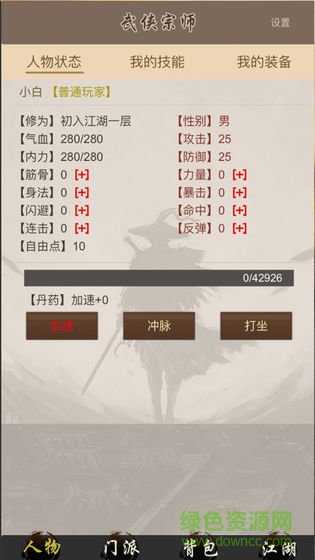 2.想成为一代大侠,当然得通过不断的刻苦训练,将武功和技能最大化的提升,通过战斗的模式激励自己。