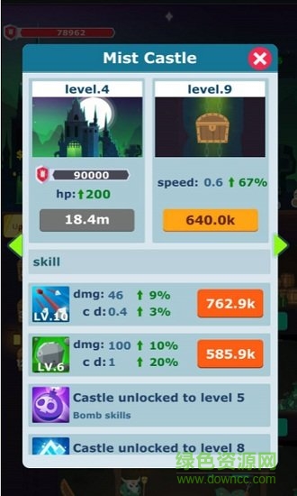 5.在游戏中玩家使用攻击英雄击杀人类可以获得金币和大量的材料增加自己跌城堡防御并使用金币进行升级。