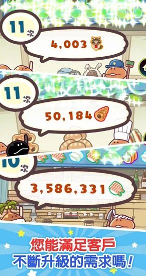 操作简单,只要点击同种方块聚集的地方即可!一鼓作气消除的越多,就越能提升营业额,目标是达成“超大量入袋”!店铺开张,会让未开拓岛屿的居民们欢欣鼓舞,顺着自身的欲望,会让订单量变得越来越惊人。“他们真的会吃2000个巧克力螺旋面包吗?”也会让挑战越来越富有难度。在偿还贷款的同时,也要运用赚来的营业额提升生产数量和店铺等级。谨慎思考营业额的用途,才是偿还借款的捷径。