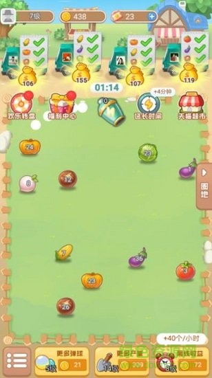 使用金币来升级农场增加更多的弹珠,解锁更多的技能;