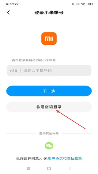 3、在登录的页面中,点击账号密码登录选项,切换至账号密码输入界面。