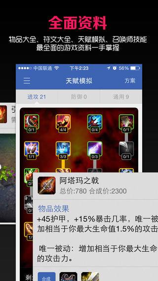 3.符文模拟器、天赋模拟器、召唤师技能等高级功能帮您还原游戏里真实环境,模拟出更详细的数据给予你辅助参考。