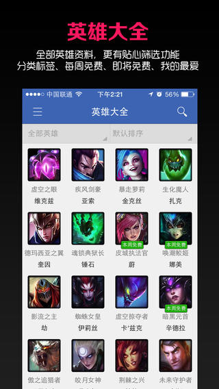 2.英雄筛选、排序、收藏、帮您更快定位到想要的英雄。