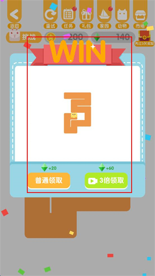 4、完成关卡后出现胜利提示,选择普通领取获取对应的钻石奖励推进游戏。