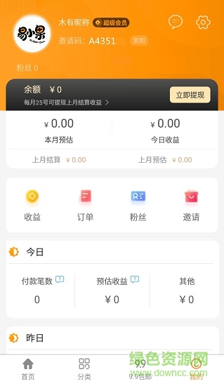 “易小果”淘宝客对员工用户开通了粉丝功能,员工二维码或邀请码邀请粉丝,粉丝注册成功后也可导购分享折扣券,导购方式和员工会员方式一样。