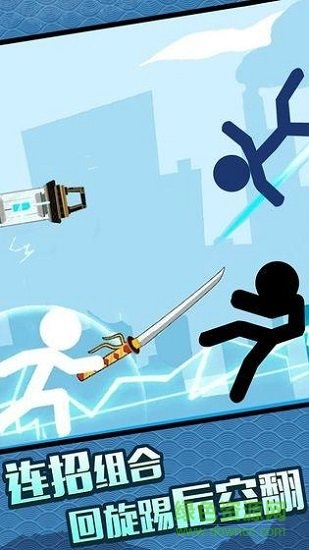 控制酷炫的火柴人击败所有的对手,左右回旋踢或二次回旋踢可以将忍者踢飞
