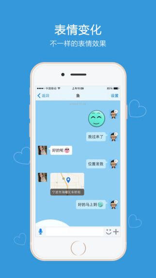 1、即时通讯:在聊天中发送文字、语音、表情、图片、位置等。