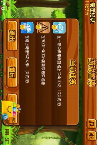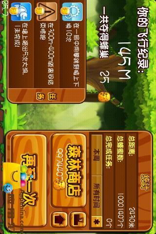 贪吃的大灰熊冲破石洞,背着它那超级喷射背包,决定把整个森林闹哄起来!点击屏幕开始吧!沿路你需要避开闪电,厄运激光,蜜弹。收集尽可能多的蜂巢。喷跑的距离越远越好。还能抓住各种动物坐骑完成各种高难度的喷跑动作。别忘了收集游戏中飘过的鱼币,可以在游戏结束后碰一碰运气。你还可以在游戏商店中更换更新奇的喷射器和道具,努力攒更多蜂巢吧!