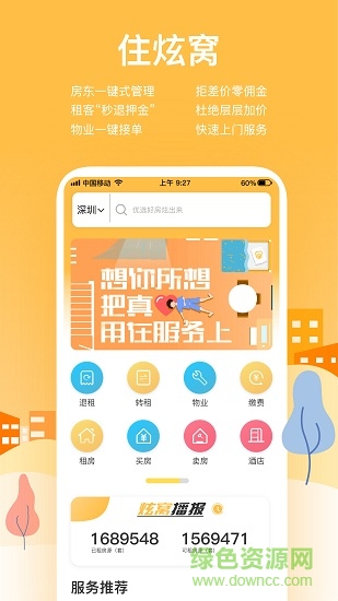 住炫窝app软件是一款非常便捷的租房管理服务手机软件,租客、房东和物业均可使用,租客可以在线找房,可以在线办理入住服务,房东可以发布出租信息和管理房客,物业用户可以快速接收并处理维修等业务,欢迎有需要的朋友到绿色资源网下载使用!