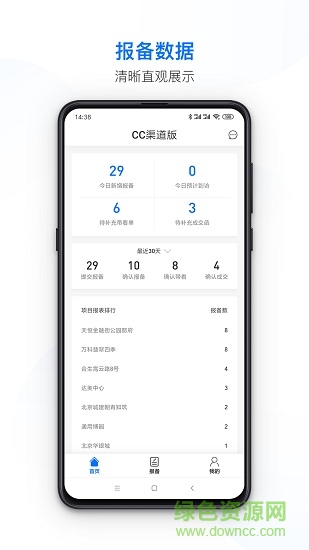 蜗牛家cc渠道版是一款供渠道用户使用的房屋管理手机软件,可以在线进行设备管理和数据报备,可以及时了解购房状态和成交情况,如果你也需要的话,那就赶快到绿色资源网下载使用!