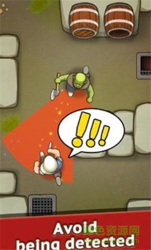卡通风格的动作冒险类游戏,玩家将扮演成一名刺客潜入敌人的基地暗杀首领,途中会有各种障碍和陷阱,有些地方会布置隐秘的警铃,一旦玩家触碰到这些东西,将引来大量的敌方士兵,这里的每一步都要小心.