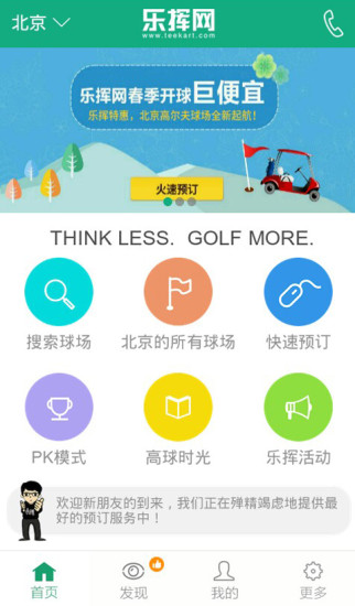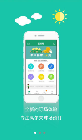 3.预订:舒适全面的预订体验,承载全国数百家球场,数十万Tee Time,用户通过乐挥网即订即打。