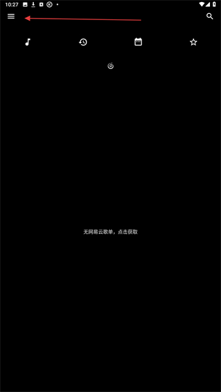 1、启动倒带音乐的应用APP,点击左上角的功能图标。