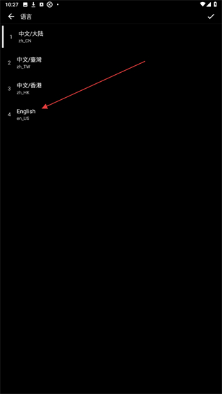 4、在语言选择的页面内,点击English的语言进行切换即可。