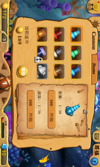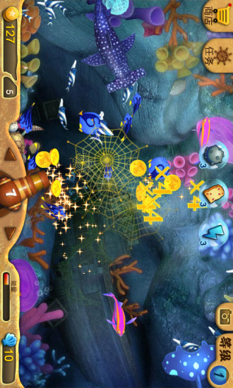 一只饥饿的小鱼游玩在海底中,你只有吃掉比自己小的鱼才能生存下去!但要躲避大鱼!你的任务正是成为在海洋中最大的鱼!游戏中为玩家提供了9个等级的火炮,而且还有水雷、面包、闪电三种道具供玩家使用。暴力捕鱼,从此捕鱼不再亏本,什么鱼都跑不掉,非常给力呀!游戏中捕获美人鱼可以获得宝藏,捕获鲨鱼可以抽奖。还等什么开始一个令人兴奋的钓鱼之旅吧!