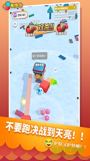 小拳拳捶你这款游戏是画风十分可爱小清新风的io类型手游,在这里有着多位玩家可以开始一场对局,在一片区域多个玩家将会上演起你追我赶疯狂互锤的壮观场面,你的目标就是要锤晕更多的玩家,最后谁的分数最高谁才是获胜者,感兴趣的话快来下载体验吧!