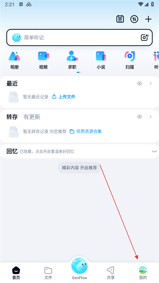 1、打开百度网盘应用,点击底部右侧的我的选项,进入个人中心页面。
