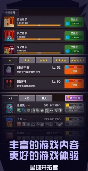 1、玩家可以在不同的星球上进行挖矿和盖楼操作,但依然围绕星球探索这一不变的主题。