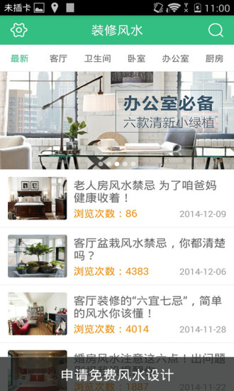 装修风水是一款专业的室内装修风水应用,在这里你可以对客厅、卫生间、卧室、办公室、厨房等进行风吹查看,了解各类房屋风水禁忌,和各类风水知识,让自己房屋成为一件旺房,帮你增加气运,更好的在生活和工作中获得财源。