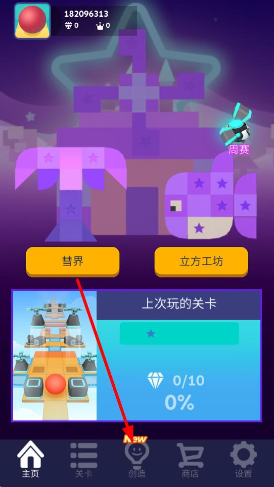 1、打开滚动的天空游戏,点击底部导航栏中的创造按钮。