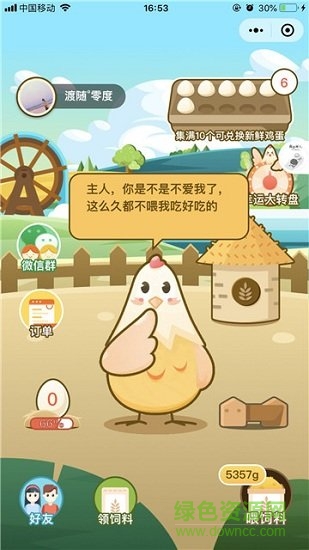 天天领鸡蛋小程序中玩家可以自己养小鸡,并且小鸡还会孵蛋喔,当然你需要足够的饲料来喂养他们,每天都有一些游戏来领取饲料,超多绿色的鸡蛋等你来领取喔,或者兑换现金都是支持的,喜欢的玩家快到绿色资源网下载体验!