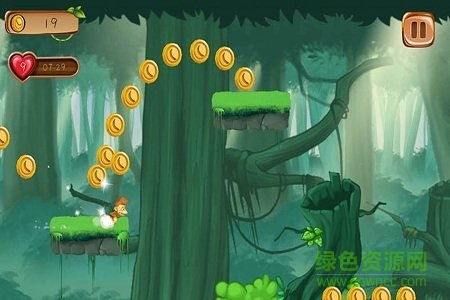 森林岛大冒险是一款横版过关游戏,操控小猴躲避关卡中的机关陷阱,还有老猴子的攻击,将金币全部收入囊中,要想收集齐所有的金币需要你拥有非常快速的反应能力。喜欢的玩家快来绿色资源网下载体验吧。