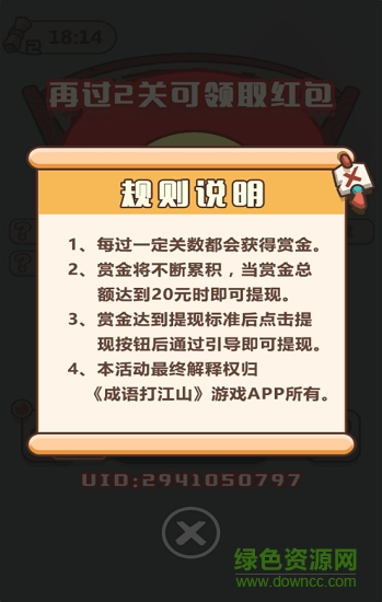 猜成语赚红包app游戏的玩法十分的简单,这里有超多的成语等你来猜,并且答对后还有相应的奖励喔,游戏的关卡众多,成功即可进入到下一关,还有成语的解释等,其中还可以进行学习,需要的用户快到绿色资源网下载体验吧!