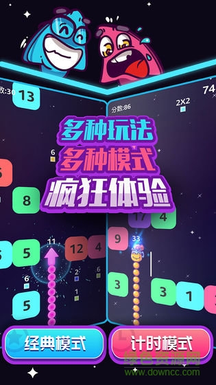 3.在计时模式各种趣味的皮肤,随心所欲的发展爽快爆炸的趣味,不断射击砖块数字;