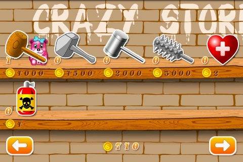疯狂打地鼠忙碌的一天过后,让我们来休闲一下,拿起手中的大锤,痛击那冒头的地鼠吧。游戏中包含了棒球棒,狼牙棒等各种武器,还有老鼠药和急救包等有趣的项目,当然前提是你要赚够足够的金币。