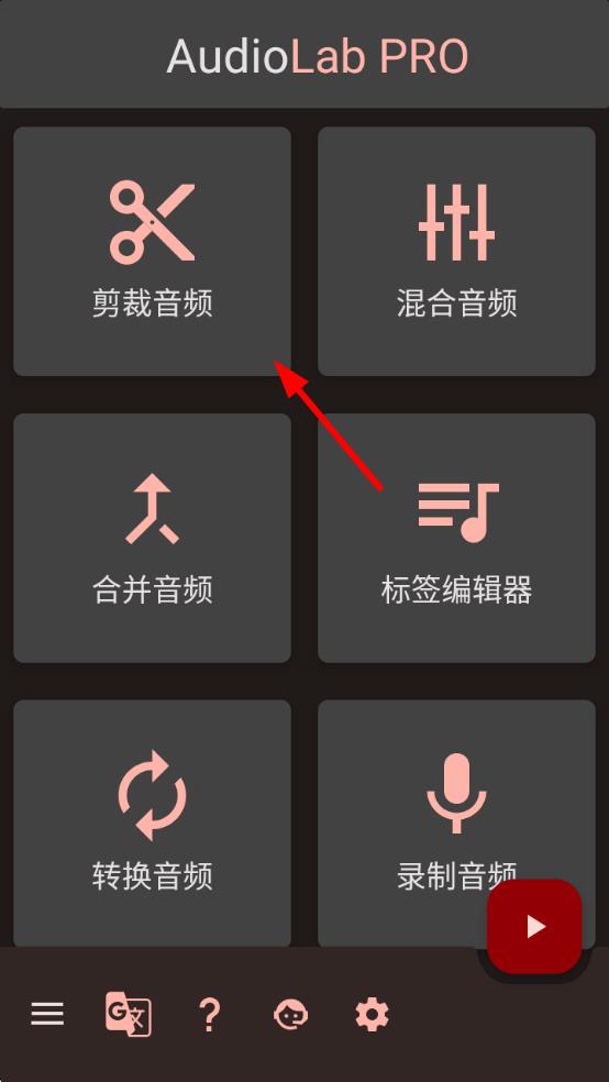 1、启动audiolab的应用,进入首页点击左下角三个横线的图标。