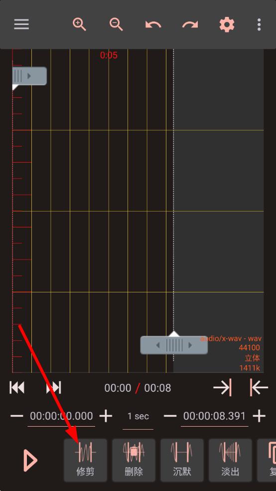 3、进入音频编辑界面后,利用下方修剪功能,可对音频的时长进行裁剪调整。