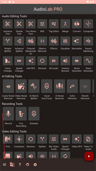 软件audiolab官方版2025是经过某大神修改的,解锁专业版功能,它是拥有多种功能的手机音频编辑软件,可以将音频文件进行格式转换,支持剪裁拼接,还可以加上各种声音特效,制作非常的方便,总之,在音频处理方面audiolab提供的功能很全面,基本可以满足大部分用户的需求。