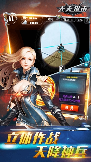 在游戏中你将扮演一位反恐特战精英,天天狙击游戏中众多的难度关卡、丰富的武器装备、爽快的击杀快感,带您走进狙击王者的世界。在这里你不仅需要争分夺秒,还需要小心谨慎。合理利用武器装备与躲避,精心计算每次战斗的成本收益。丰富的每日任务,逼真的操作方式带给您不一样的游戏体验。你还在等什么?快快加入吧!
