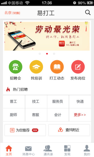 联系工友、查看最新就业政策。找工作、找培训、看政策、聊就业