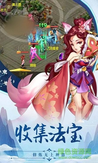 2.游戏画面细腻清新,人物设计Q萌美丽,还有仙剑女神伴你同游游戏世界,装备阵法变幻莫测,双技能连击超强伤害力