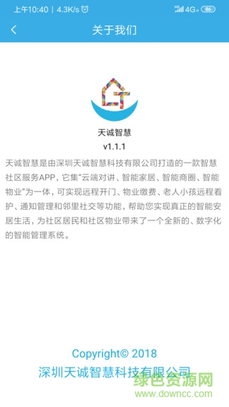 深圳天诚智慧app是面向社区居民推出的社区服务软件,提供了智能门禁、智慧停车、物业缴费、物业保修等综合服务功能,r让业主用户可以享受到贴心的物业服务体验!欢迎来绿色资源网下载使用。