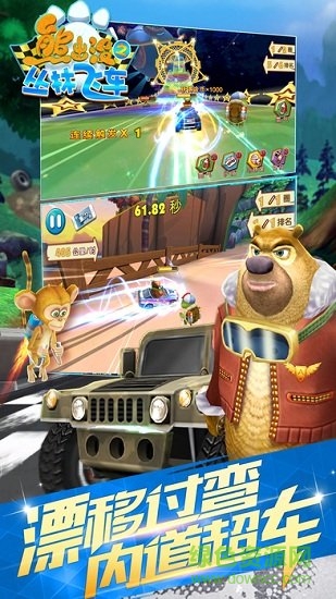 熊出没之丛林飞车最新正式版是一款由知名动漫《熊出没》改编的趣味3D竞速游戏。游戏拥有华丽的游戏场景、畅快淋漓的飞车体验、丰富的赛车和车手、多元化的科技系统等多姿多彩的娱乐系统。游戏选用多样化主题的游戏场景和精心细致的建模,搭配光影渲染,通过开发人员的技术优化,即使一台普通手机玩家也可带着自己喜欢的车手、驾驶炫酷的战车流畅地飞驰于赛道。