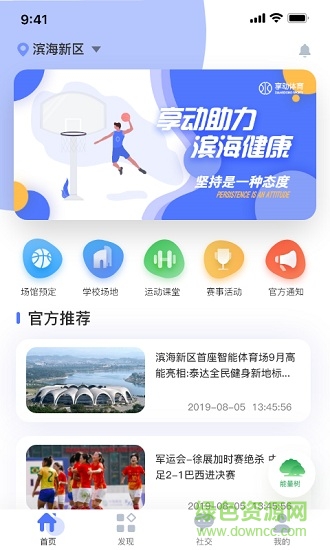 提供滨海新区及周边体育场馆预订服务,包括但不限于球类、健身、游泳等多个种类。