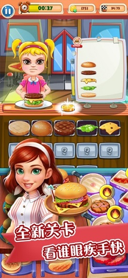 全新的汉堡餐厅开张了!带着制作最美味汉堡以及赚大钱的梦想,你要有条不紊地制作出各类美食满足顾客,升级厨具和食物原料,装潢餐厅,并开出许多的分店成为汉堡大师!