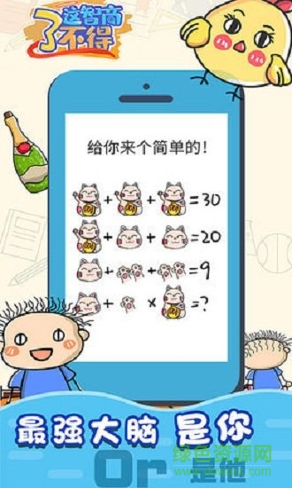 这智商了不得游戏是一款挑战极限的趣味烧脑解谜闯关游戏,卡通风格的游戏画面,游戏玩法虐心又上瘾,众多不同类型的游戏关卡挑战。玩家需要仔细的观察题目文字和画面,寻找一些线索,用智商来完成一个个难题,寻找奥妙之处,找到关键线索,时刻小心陷阱,成功难题。