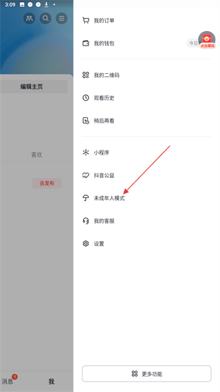 3、在功能列表里找到未成年人模式选项,点击进入对应的设置页面。