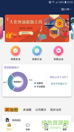 大化西油软件是一款石油服务app,支持买油、卖油以及运油等业务,有详细的物流数据统计图和比例分析,支持在买油圈以及卖油圈进行探讨交流,欢迎有需要的朋友到绿色资源网下载使用!
