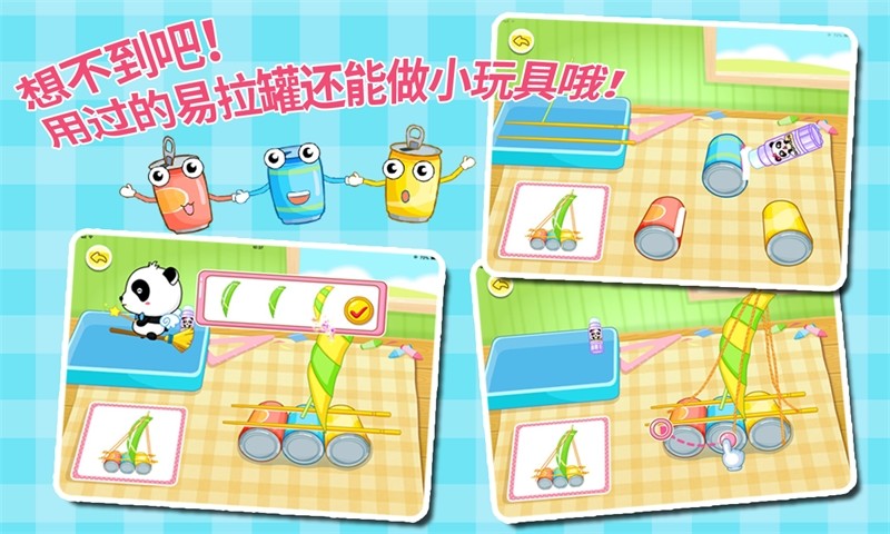变废为宝是一款儿童教育类休闲游戏,主要是通过小朋友自己动手的方式将生活中的牛奶盒、饮料瓶、一次性餐具、废纸箱等废弃物转变成储蓄罐小汽车等宝贝,非常锻炼小朋友的动手能力和想象力。喜爱的朋友赶快下载体验吧!