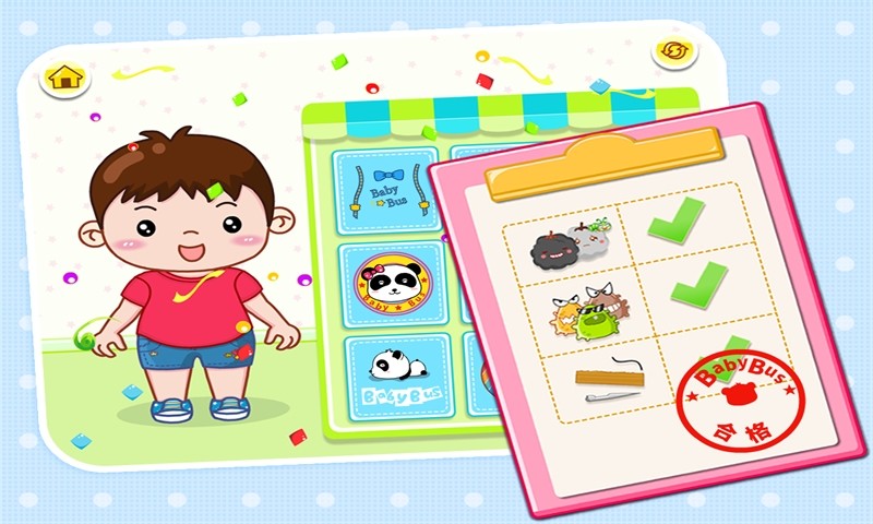 宝宝制衣是一款休闲益智手机游戏,专为儿童设计,画面活泼可爱,新鲜有趣的场景,让孩子在制作衣服的过程中,不知不觉地学到好衣服的基本标准。让宝宝养成良好习惯,喜爱的朋友赶快下载体验吧!